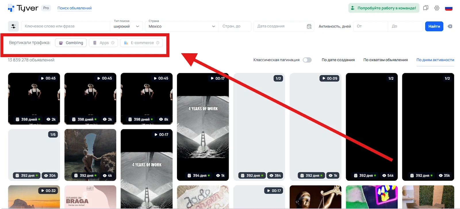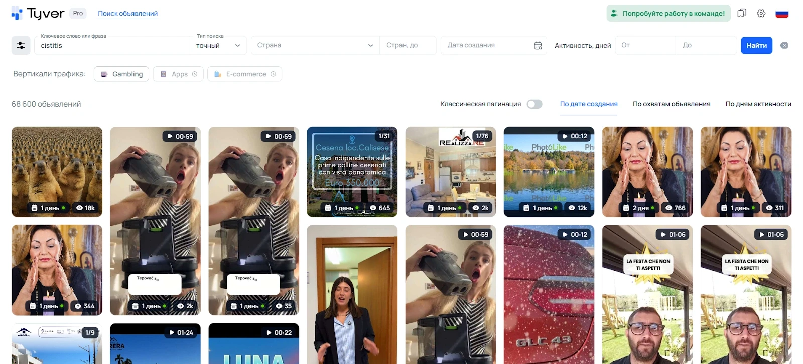 Чтобы удовлетворить запросы аффилиатов, спай-сервисы потихоньку внедряют поиск крео по вертикалям. Например, сейчас эта опция активно внедряется в Tyver.