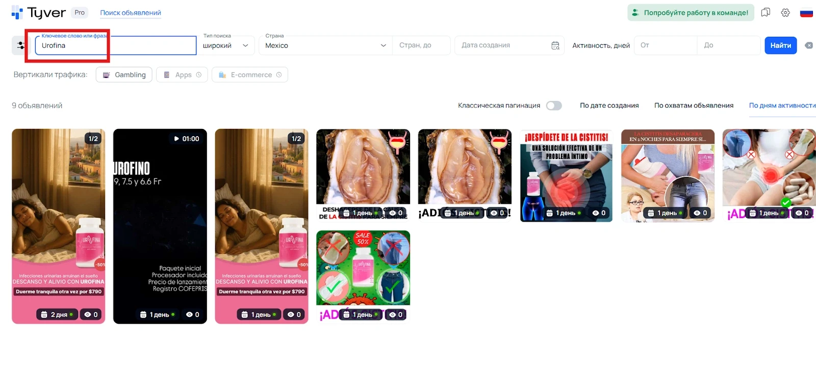 Нутра в Мексике: ищем креативы в Tyver по теме здоровья на офферы Meta CPA