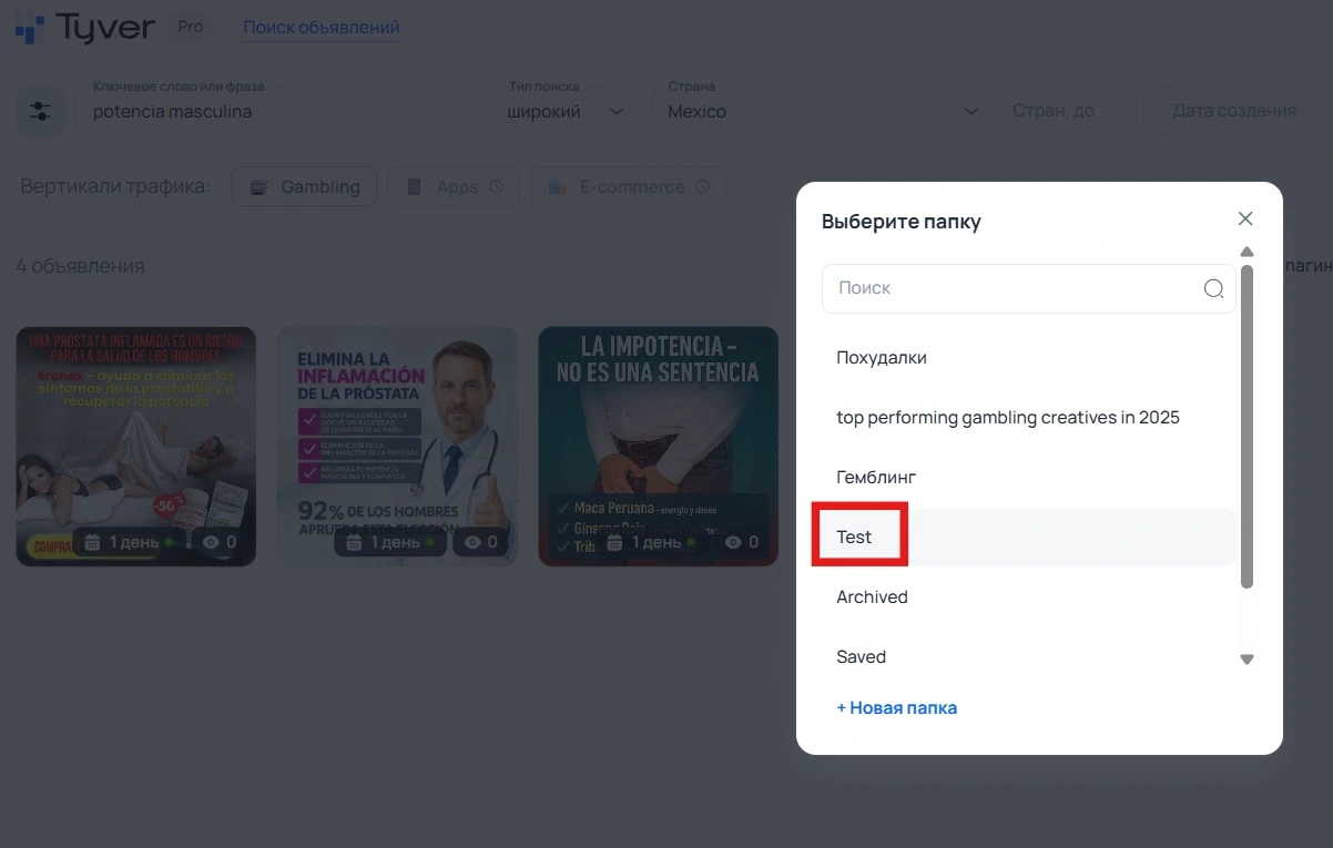 Мексика остается одним из самых прибыльных ГЕО для нутры в 2025 году. Здесь хорошо работают прямолинейные подходы и яркие креативы, которые уже не проходят в Европе. А найти их проще всего через Tyver — сервис, где можно быстро отобрать живые объявления, изучить фанпейджи рекламодателей и сохранить нужные крео в папки. Такой мониторинг помогает не тратить бюджет на догадки, а запускать проверенные связки, адаптированные под местный рынок.